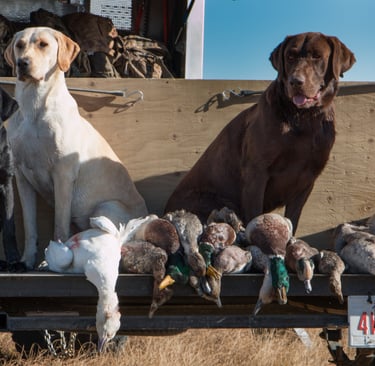 One day during Elle's first waterfowl season, when she was just over a year old I doubled on mallards just before the end of legal light. Both birds landed in a stand of cattails so thick that I felt a retrieve would be impossible. To complicate the matter further I could tell that one of the birds was only wounded. I was discouraged at the prospect of loosing birds and I halfheartedly sent my young dog into this thick, seven foot high mass of vegetation not expecting a positive outcome. I knew she had no experience with anything like what I was asking her to do. However, what she lacked in experience she made up for with heart. She would fight her way into the vegetation and hunt around as best she could then she would come out to get her bearings and then in she would go again. This process was repeated over the course of ten minutes or so and eventually to my delight both birds were retrieved, including one very lively cripple.